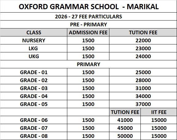 | 6 | SCHOOL EMAIL ID | Oxfordgrammarschoolcbsemarikal@gmail.com |